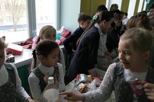 На прошлой неделе в школе прошла благотворительная ярмарка. Собранные средства были переданы детям и членам коллектива с ограниченными возможностями, а также, переданы в благотворительный фонд "Азнакай"./Узган атнада мәктәбебездә хәйрия ярминкәсе булып үтте. Җыелган акчалар мәктәбебезнең мөмкинлеге чикләнгән балаларына һәм коллектив әгъзаларына, шулай ук "Азнакай" фондына тапшырылды.