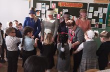 В 4 А классе был проведён классный час на тему "Неизвестный солдат Великой Отечественной войны" Учащиеся 10 класса провели с ребятами беседу. Далее ученики возложили цветы к памятнику Победы./4 нче сыйныфта "Бөек Ватан сугышының билгесез солдаты" темасына класс сәгате уздырылды. 10 сыйныф укучылары кечкенә дуслары белән әңгәмә үткәрделәр. Аннары укучылар Җиңү һәйкәленә чәчәкләр куйдылар.