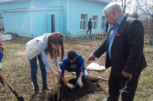 В честь первомайских праздников обучающиеся 11 класса посадили деревья в саду школы.