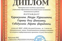 Поздравляем учителей нашей школы Гараеву Р. Ф, Карамуллина А. Н. и Габидуллина А. Ф. с победой в муниципальном этапе республиканского конкурса историко-культурных информационных проектов «Служу Отечеству». Желаем успехов на финальном этапе конкурса!