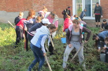 Мәктәп яны тәҗрибә участогында уңышны җыеп алу эшләре башланды.