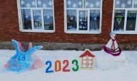 Укучылар Яңа елны каршыларга әзерләнәләр . Мәктәп ишегалдында кар сыннары ясап куйдылар.