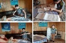 6 сыйныф укучысы Сергеев Ярослав үзенең әнисенә битлекләр тегәргә ярдәм итә.