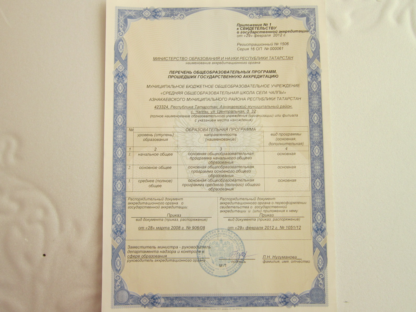 Муниципальное бюджетное общеобразовательное учреждение «Средняя общеобразовательная школа села Чалпы» Азнакаевского муниципального района Республики Татарстан
