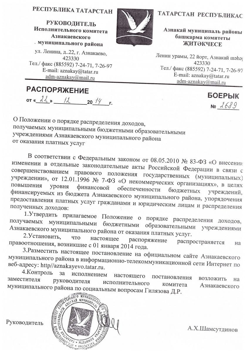 ДОД: Распоряжение Главы Азнакаевского м.р.РТ