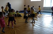 Очень весело провели развлечение "Зимние забавы" вместе с мишкой Михаилом Потаповичем, снеговиком Яшей и Марфушей./ Кышкы күңел ачу чарасы аю Михаил Потап улы, кар малае Яша Һәм Марфуша белән бик шаян, күңелле үтте.