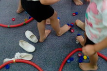 На физкультурных занятиях кружка "Непоседа" дети выполняют профилактические упражнения для профилактики плоскостопия.