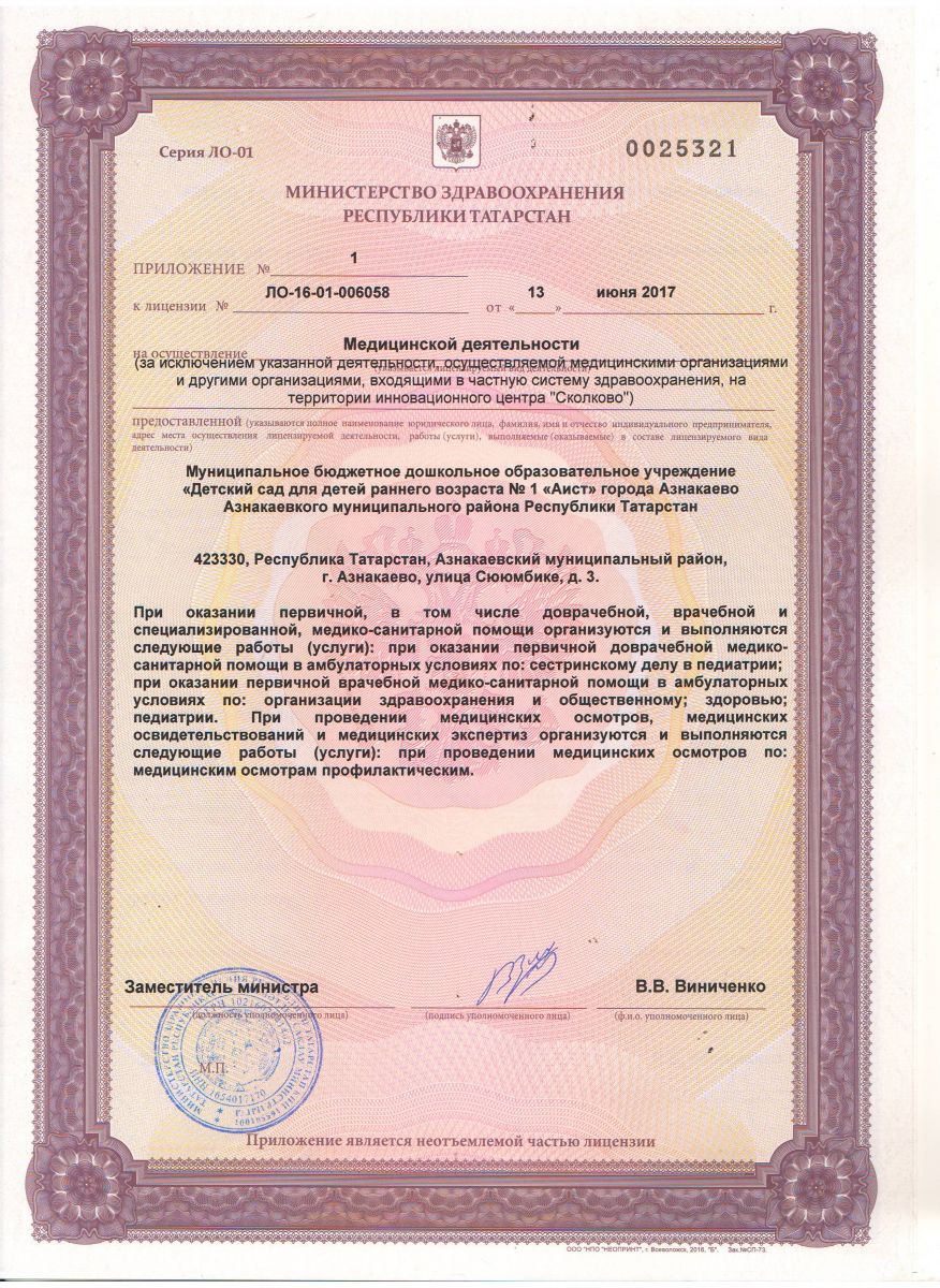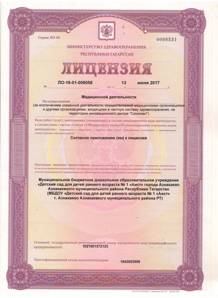 | Короткое название: | МБДОУ Д/С №1 'Аист' г.Азнакаево Азнакаевского МР РТ |