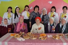 Җиңү көненә багышланган чарада "Ак калфак" оешмасы әгъзалары безнең ветераннарыбызны бәйрәм белән котладылар.