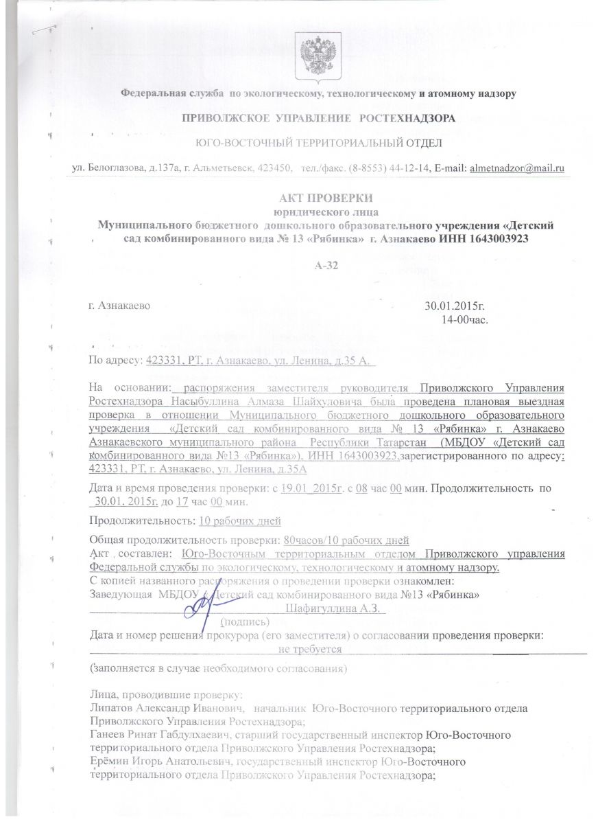 | Короткое название: | МБДОУ №13 "Рябинка" г. Азнакаево |