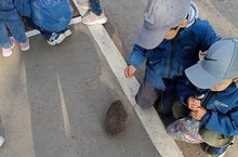 К нам в гости пришли ежиха с детенышем.