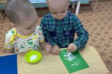 Нетрадиционное рисование «Одуванчики» с использованием трубочек для сока и гуаши в группе раннего развития №1