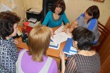 В рамках деловой игры "День дублера" заведующий-дублер Жанна Сагадатовна знакомится с методической работой нашего сада