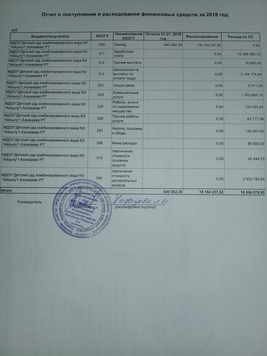 отчет о поступлении и расходовании финансовых средств 2018 г