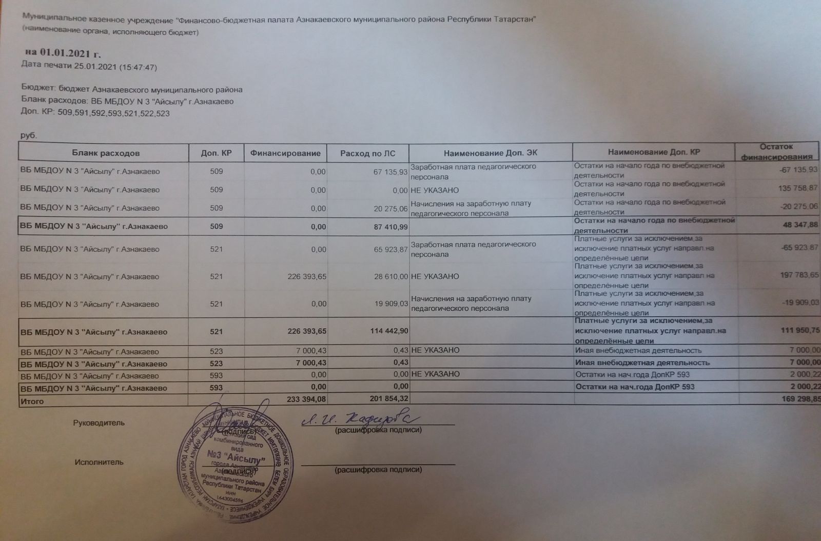отчет о поступлении и расходовании внебюджетных средств 2020 г