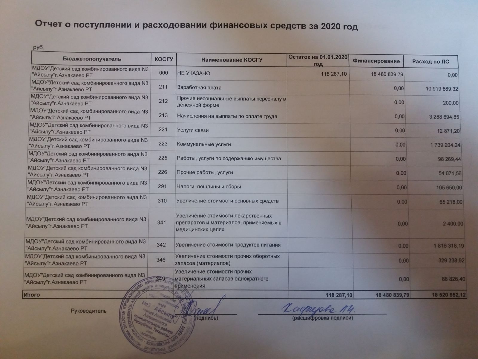 отчет о поступлении и расходовании финансовых средств на 2020 год