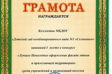 Коллектив нашего детского сада занял 1 место в конкурсе "Лучшее новогоднее оформление фасада здания и прилегающей территории" среди организаций и учреждений поселка Актюбинский