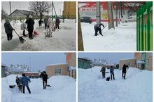 Совместная деятельность родителей и педагогов в расчистки территории от снега 21.12.2023
