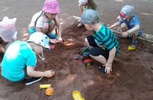 Мы в песочнице играем, Строим домик из песка, Увлеклись, не замечаем, Что носки полны песка. Принесли воды в ведёрке, Чтобы не сломался дом, Красовался на пригорке, Мы его водой польём. 08.07.2020