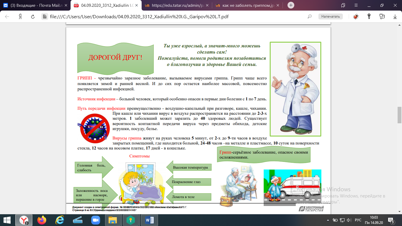 Видеоролик https://www.youtube.com/watch?time_continue=26&v=QhVmdwXINcM&feature=emb_logo) по профилактике гриппа и ОРВИ