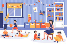 Кечкенә төркем балалары рәхәтләнеп төрле уеннар уйныйлар.