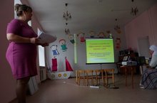 Воспитатель по обучению татарскому языку Мутигуллина А.Н. с детьми подготовительной к школе группы № 12 показала мастер-класс «Күңелле сәяхәт». С презентацией из опыта работы выступила старший воспитатель ДОУ Фатхуллина Н.Н. Выставку-презентацию дидактических игр по УМК продемонстрировала воспитатель по обучению татарскому языку Хайдарова Р.Г.