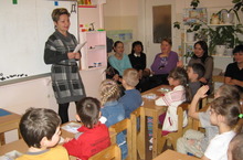 Взаимодействие с родителями в нашем ДОУ проходит как в традиционной, так и в инновационной формах. 5 декабря 2013 г. в подготовительной логопедической к школе группе № 12 прошло родительское собрание, на котором родителям было представлено открытое фронтальное логопедическое занятие учителем - логопедом Илюхиной С.У. вспитателями группы Сафиной Л.Р. и Салимовой Л.Н. были разъяснены вопросы повышения родительских взносов за детский сад с 1 января 2014 года.