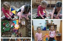 Наполная мозаика "Веселая стройка" очень нравится нашим ребятишкам. Они создают разные поделки и фигурки, затем их используют в своих творческих играх.