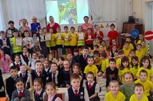 Сегодня в детском саду конкурс среди подготовительных групп и первоклассников прошел веселых и находчивых по правилам дорожного движения с участием начальника отделения профилактики в Азнакаевском районе ГБУ «БДД» ГУ в г. Альметьевске Сагдатуллиной А.Р.