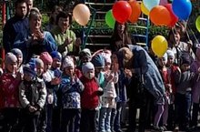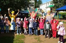 Дети старшей группы №10 "Тамчыкай" поздравили сверстников детского сада "Теремок" с открытием после ремонта.