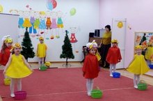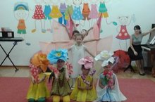 Балалар рәхәтләнеп Көз белән уйнап күңел ачалар. Һәр төркемгә Көз бүләкләр белән килеп, күчтәнәчләр белән сыйлый.
