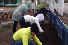Родители и педагоги на субботнике в ДОУ. 13.05.2017