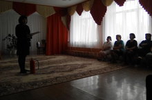 Инспектор ВДПО Раиля Асафовна,провела обучение по пожарно-техническму минимуму, Практиеские действия с огнетушителем ОП-4
