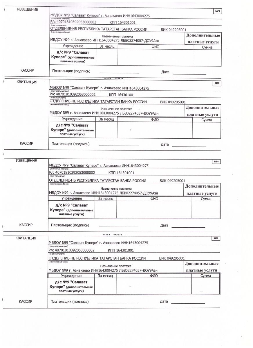 Квитанции на платные доп.услуги. \\Түләүле өстәмә хезмәтләр өчен квитанцияләр.