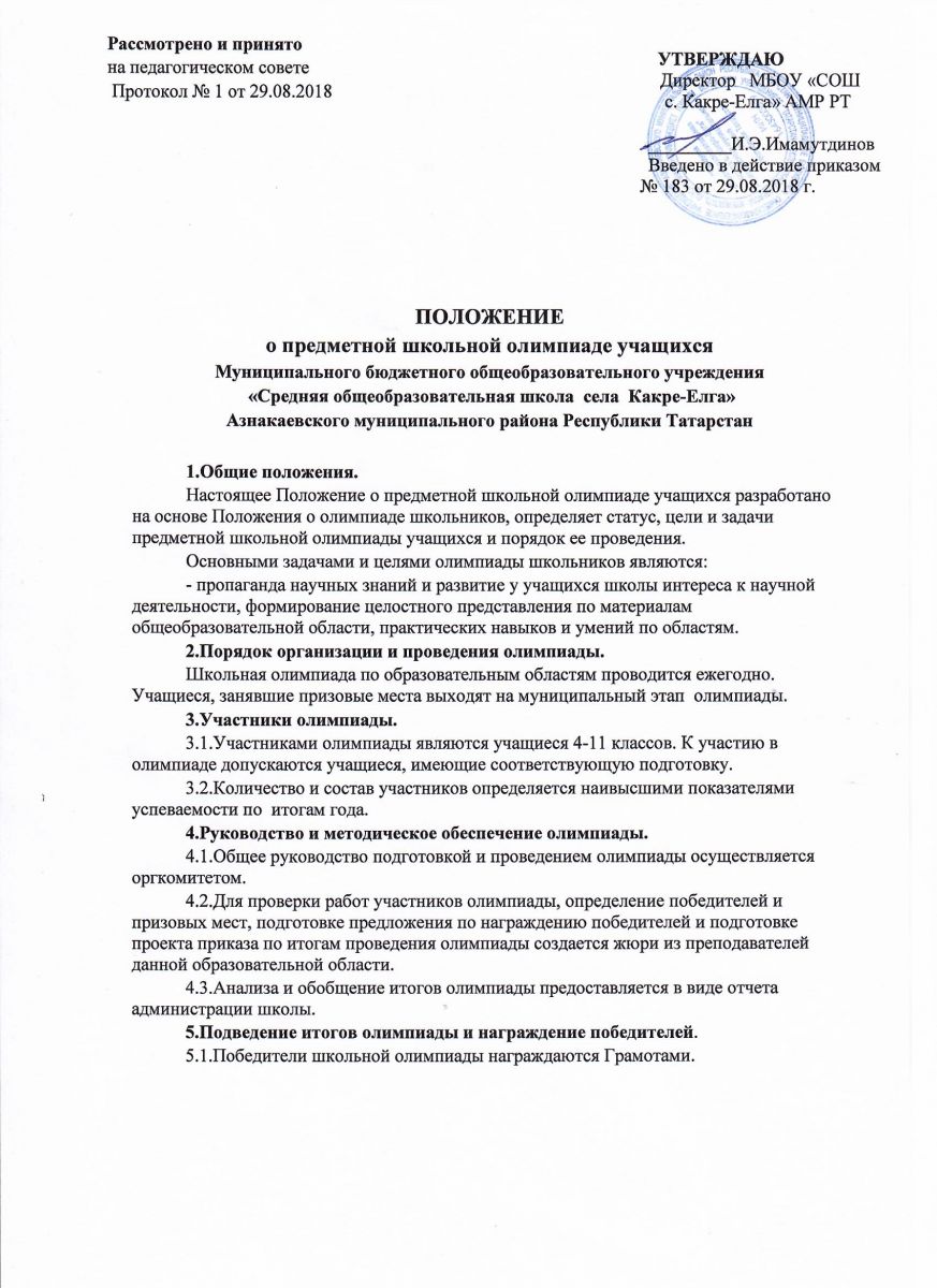 Положение о школьной олимпиаде