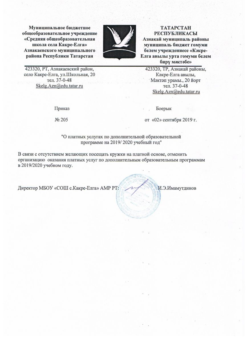 Приказ платные образовательные услуги 2019-2020 учебный год