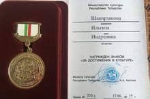 29 августа на День Республики преподаватель Шакирзянова И.И. была награждена почетным нагрудным знаком Министерства культуры РТ "За достижение в культуре", преподавателю Абсалямовой Ф.З. было вручено Благодарственное письмо Министерства культуры РТ.