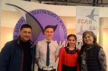"Если бы..." дип исемләнгән сәхнә осталыгының Бөтенроссия V нче Ачык фестиваль- конкурсы лауреатлары Азат Миргалиев һәм Мәдинә Мансурова җитәкчеләре Илдар Ансарович Динмухаметов белән.