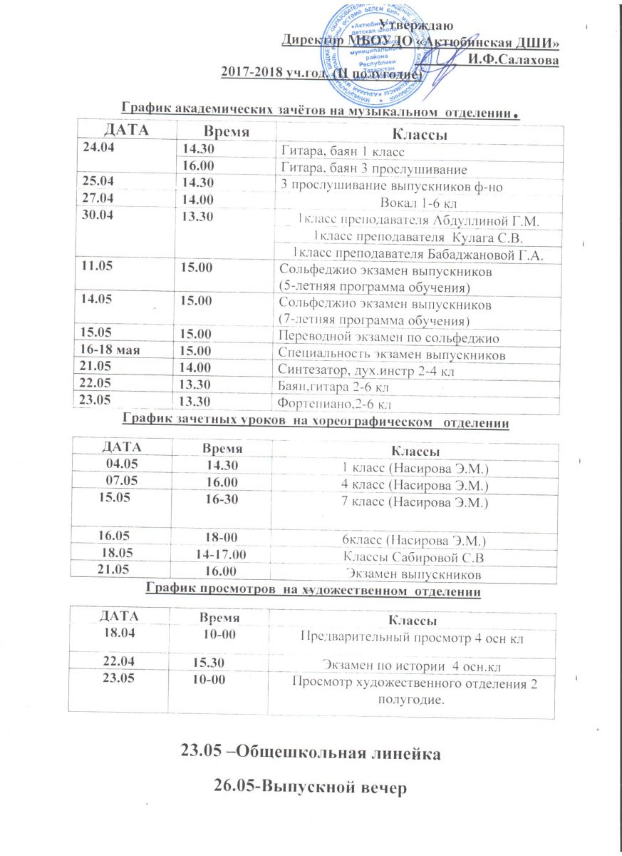 04.09.18г. в Актюбинской ДШИ прошла торжественная линейка, посвящённая началу нового учебного года. На сцене выступил с поздравительными словами директор школы заслуженный работник культуры РТ Салахова И.Ф., а также заведующие отделений, которые представили родителям и ребятам всех преподавателей школы искусств. Были показаны яркие концертные номера учащихся школы. В добрый путь!