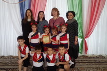 Детский творческий коллектив победитель в номинации "Спортивный танец с элементами гимнастики" среди воспитанников образовательных учреждений танец "Веселые капельки". Руководители: Нургазиева Лия Хасановна,инструктор по физической культуре, Басырова Нели Камиловна,инструктор по плаванию.