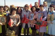 «Бессмертный полк» на кумачовой ткани,