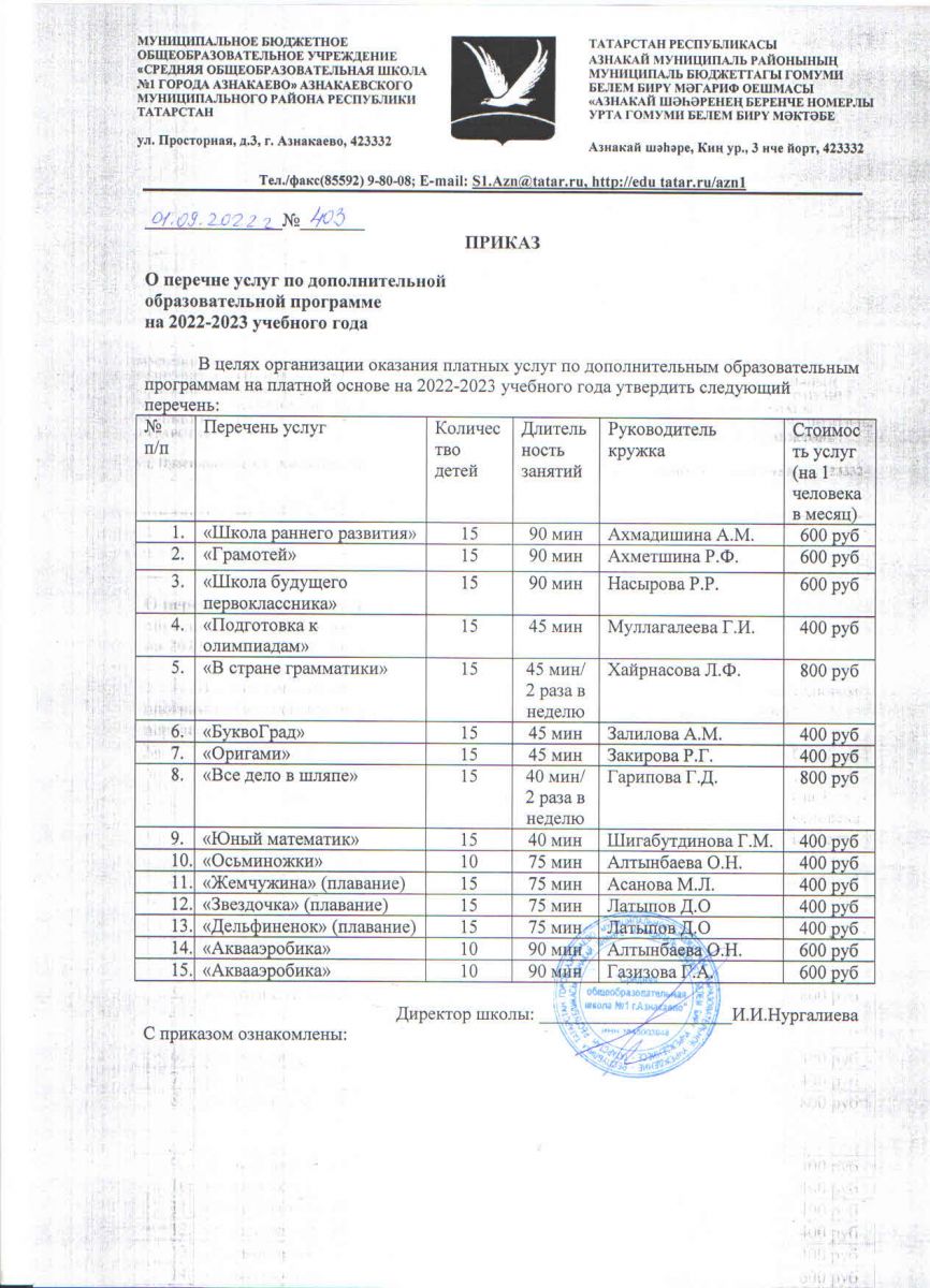 | Короткое название: | МБОУ «СОШ №1 г.Азнакаево" Азнакаевского муниципального района РТ |
