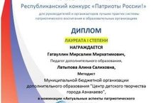 Поздравляем Гатауллина М.М. и Латыпову А.С. - победителей Республиканского конкурса "Патриоты России" для руководителей и организаторов лучших практик системы патриотического воспитания 28.11.2023