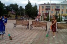 Сотрудники МБО ДО «ЦДТ г. Азнакево» еженедельно выходят на субботники по очистке территории площади Татарстан 11.08.2016