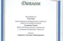 Учащаяся краеведческого объединения МБО ДО ЦДТ «Активисты школьного музея» Галимова Рания приняла участие во Всероссийском краеведческом конкурсе «Красота родного края» 13.05.2016