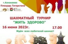 16.06.2023г. в 17.00ч. на площади Татарстан г. Азнакаево состоится шахматный турнир "Жить здорово". Ждём всех любителей шахмат! 15.06.2023