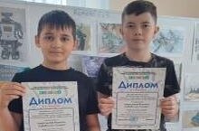 Дипломанты 2 степени Республиканского этапа Всероссийского конкурса начального технического моделирования и конструирования "Юный техник моделист" Хаертдинов Марсель и Хабибуллин Салават в номинации "Робототехника и интеллектуальные системы". 05.05.2023