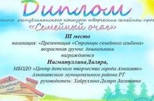 Поздравляем Нигматуллину Диляру с победой в Республиканском конкурсе творческих семейных проектов "Семейный очаг" (пдо Хайруллина Д.З.) 27.04.2021