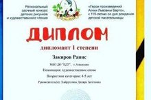 Поздравляем Закирова Раниса с победой в региональном конкурсе детских рисунков (пдо Хайруллина Д.З.) 27.04.2021