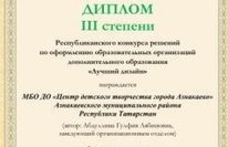 МБОДО "ЦДТ г. Азнакаево" занял 3 место на Республиканском конкурсе решений по оформлению образовательных организаций дополнительного образования "Лучший дизайн" 02.06.2020